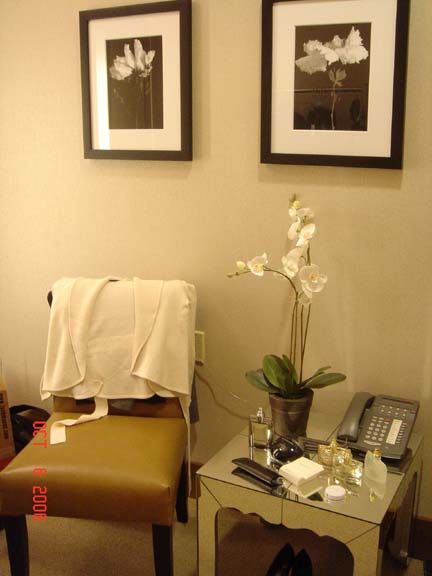 當我十一點抵達「At Your Service」的時候,Teresa事先已經花一小時把我要的衣服及我的尺寸都挑出來掛在更衣室裡。好的百貨公司真的連細節都顧慮到了,單間的更衣室很大,有二張單張沙發椅及一張小咖啡桌,不但準備了礦泉水和高腳杯,連試衣用的高跟鞋還是Stuart Weitzman 這等名牌,真是讓我想大叫“有錢真好”,也算是給我一個努力賺錢的動力吧。我們大概花了一個小時把所有的衣服都試穿過,中間Teresa還會再去拿不同尺寸及款式的衣服進來,因為我有預算,不能每件都拿,所以就以有「哇」效果的衣服為優先。請他們先寄放我所挑的衣服,等我最後逛街回來再來付錢領取。