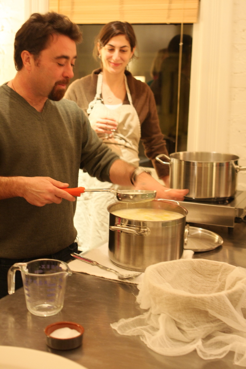 主講人Wil Edwards本身是一位非常有經驗的goat cheesemaker, 他以前工作的農場養有上百隻的山羊, 幾隻和他比較親近的還有取名字喔! 課堂上他告訴我們如何辨別 farmstead cheese, 介紹我們課堂上食用的那八種起士的農場歷史, 主要製作起士人的理念, 養殖哪一種動物, 起士製作過程的特色, 以及整個起士製作過程 – 從動物的養殖, 牛奶的取得, 到桌上的起士, 課堂最後還現場製作起士給我們當甜點喔.