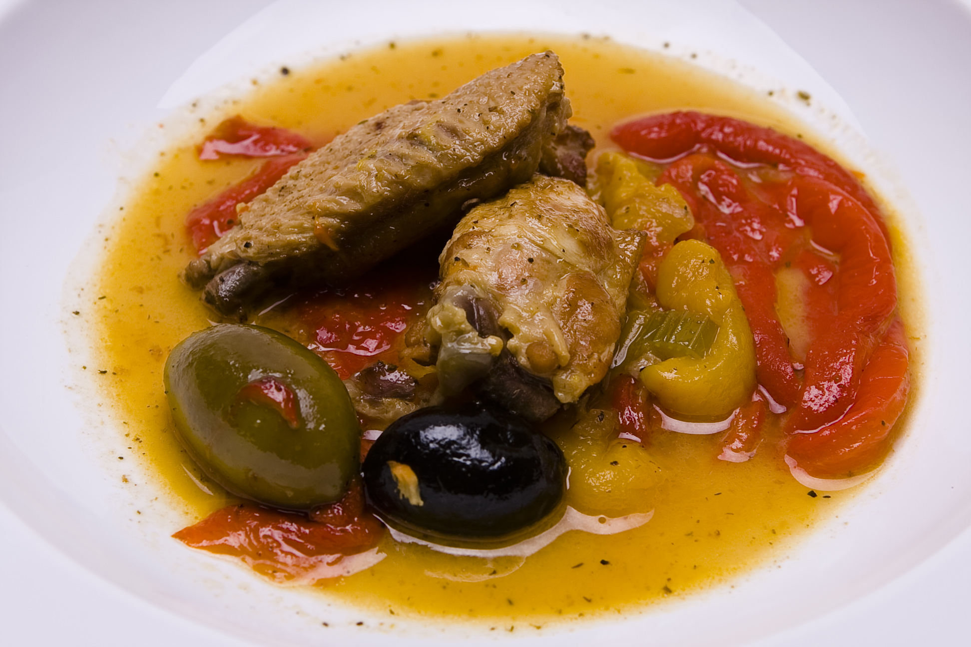 Braised Chicken with Olives and Sweet Peppers