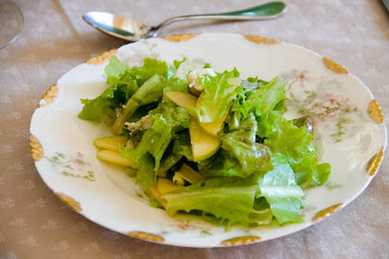 6. Hearts of butter lettuce with sliced apples, walnuts, and Roquefort cheese,