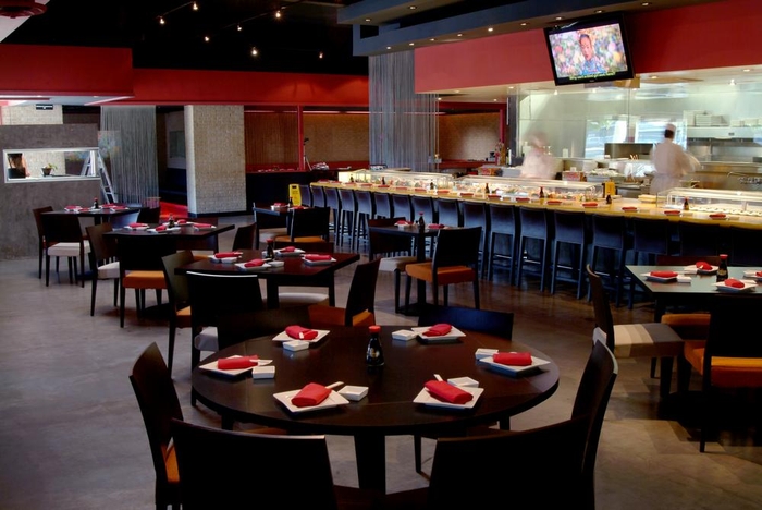 進了餐廳的第一眼感覺還不錯, 高挑的室內天花板, 完全開放式空間, 有一處等候區, 二處用餐區, 水泥地板, 紅黑相間的色調, 很適合人多的團體來用餐, 但是我覺得少了點甚麼來Soften, 也許牆上可以掛些畫來軟化一下這個冷硬的用餐空間吧. 他們中午有All You Can Eat Lunch Special $14.95, 如果你一個人吃的下二個Rolls或五個壽司的話才划算, 不然像我這個魚胃 肯定要單點才省錢.