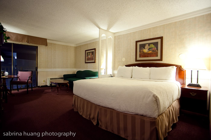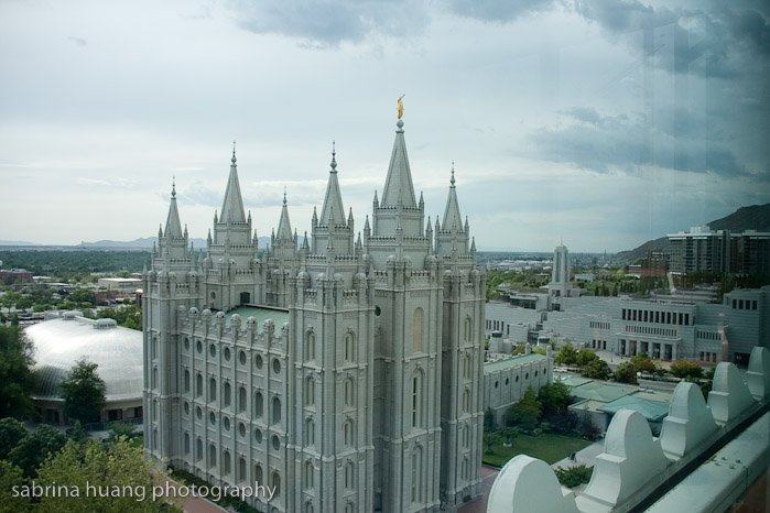 我們選擇住在Salt Lake Plaza Hotel, 它剛好位在Temple Square旁邊, 飯店門口就有UTA/TRAX Light Rail站 (市區有Free fare zone), 離Visitor Center也不過二條馬路, 算是非常centrally located in the heart of downtown. 由於Queen bed and King bed的房間只差八塊錢, 所以我就挑了大床的房間, 房內很寬敞, 二個洗臉區, 有冰箱, 微波爐, 咖啡機, 吹風機, 電視, 大床旁邊有大沙發和桌椅, 我選擇離逃生梯近的房間, 否則的話, 樓層另一邊可以看到Temple Square.