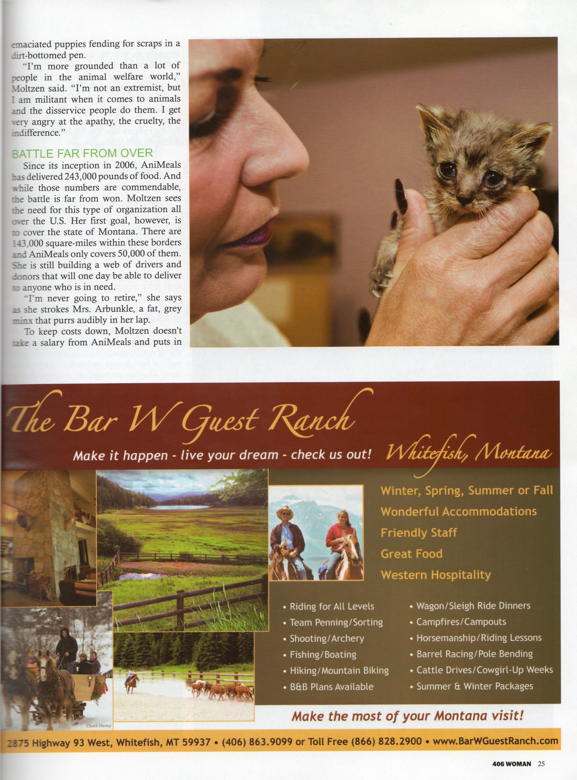 Page 23 & 25的相片是我拍的. 圖中的主角叫Karyn Moltzen, 是Work Force, Inc. 和 AniMeals二家公司的創辦人, 前者是人力資源公司, 幫待業者和顧主牽線的工作紅娘; 後者是貓狗代言者, 專門收養被棄貓狗, 仰賴各方人士及集團的捐款和捐動物食物, 以及義工的幫忙, 開車到府送給家有動物的老人免費的動物食物.