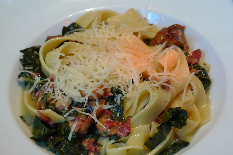 我們當天點的幾道菜都不錯吃, 新式法國餐館的特色是菜量都不算大, 符合我們少量多盤的喜好, 這樣我們可以多點幾道, 每一樣都嘗一點, 當天一致公認最讚的就屬其貌不揚的義大利寬麵了.
