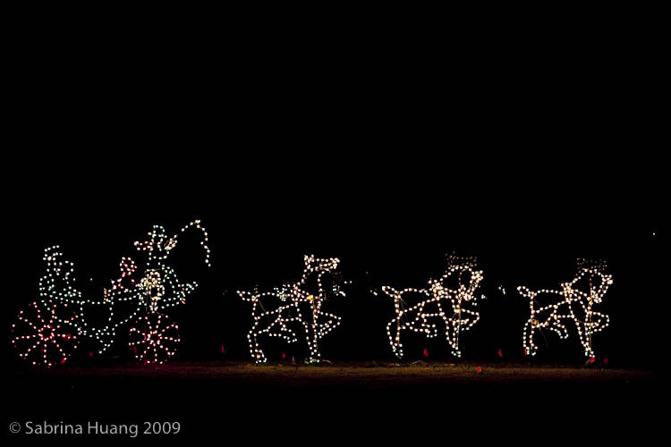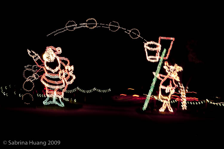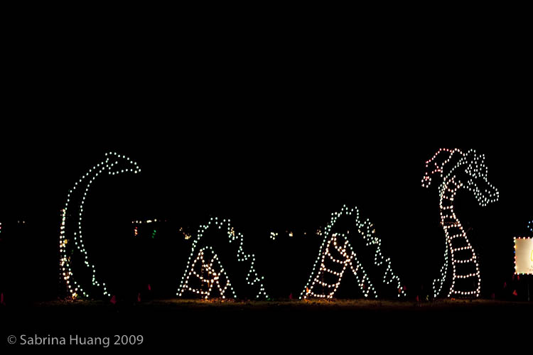 我們大約七點左右抵達, 一路上的指標很清楚. 我們運氣不錯, 日子挑的好, 好像有很多人週五就已經出城度假去, 車子比預期少很多. 入場費是一台車十五塊, 一份簡介和二個3D眼鏡, 要將車頭燈關掉, 將收音機調到104.1FM, 一面賞燈, 一面聽聖誕音樂.