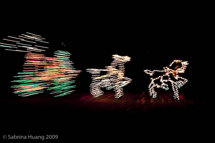 這個燈飾是動態的, 所以要用稍微慢一點的Shtter Speed才能將那個動作全拍下來 (同樣的理論適用在拍煙火). 2 second, f/16, ISO 800.