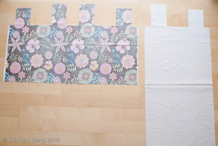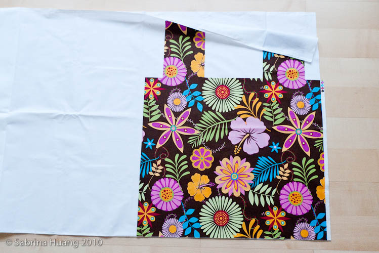 第二步是選喜歡的布料和圖樣. 棉布, 帆布, 麻布, 塑膠布都可以; 較薄的布建議另做內裡來加強韌度. 這裡我用的是棉布, 所以我另外選了一個白色棉布做內裡. 麻布有分薄和厚, 如果用薄的麻布, 最好再做一層內裡; 其他向帆布和塑膠布都夠厚, 沒內裡沒關係. 如果覺得有內裡比較美觀, 就找薄的棉布做.