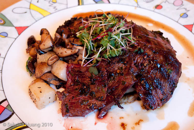 老公點這道Skirt Steak…Grilled Kobe Beef w/ Mushrooms, Garlic & Honey. 那肉質真嫩, 可惜整個擺盤的食材顏色不夠亮麗.