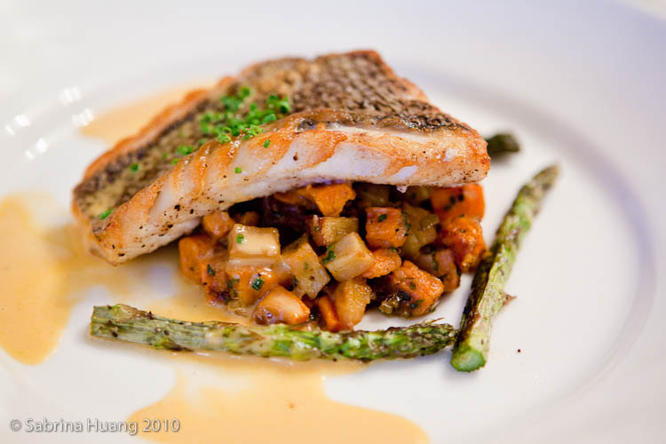 它的主菜有七種選擇, 除了Today's Seafood和Yam Gnocchi, 其餘全是肉類 (Quail, Steak, Duck, Lamb, Pork Loin). 我當天對肉類沒興趣, 所以就選了Walleye Fish from Minnesota, 魚皮酥脆, 魚肉新鮮多汁, 很好吃, 不過希望烤蘆筍可以再多一點.