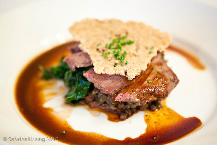 老公點Liberty Farms Duck Breast with French Green Lentils, Confit, Brittle, Blommsdale Spinach and Harissa Jus.