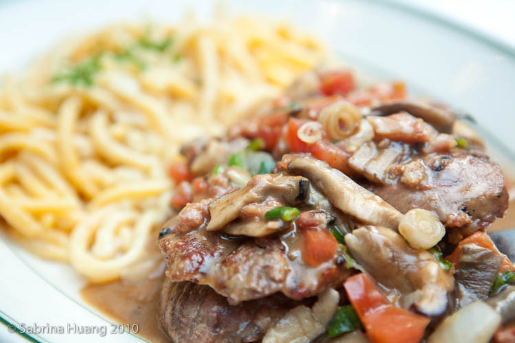有沒有發現那個食物的份量, 實在大的嚇人, 左邊這個是我和老公分一盤, 結果也沒有吃完, 最後還是打包帶回家; 而那隻大骨頭, 就給同桌家裡有狗的朋友帶走啦. 不過我看同桌的朋友多半都有吃完, 所以味道應該不錯.