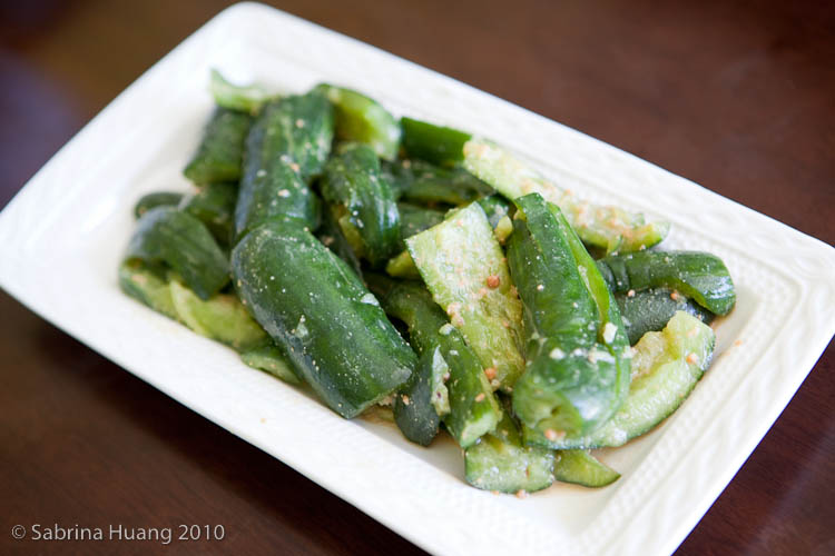 左邊那盤是正宗韓國泡菜, 愛吃辣的可別錯過, 不吃辣的可點右邊那盤小黃瓜冷盤.