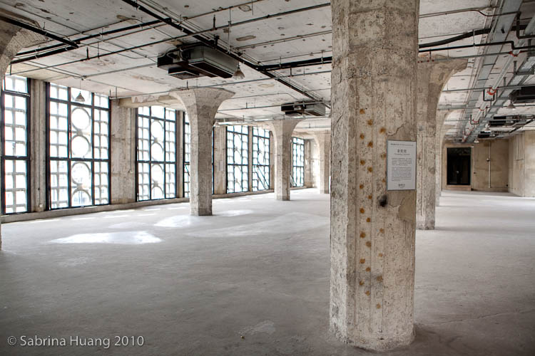 1933老場坊原是一處屠宰場, 由著名英國設計師Balfours在光緒時期(西元1933年)所建, 全世界有這規模的屠宰場只有三個, 但只剩上海還保留原來的建築. 整個建築有四層樓, 外方內圓, 內部有如迷宮, 細節請看這裡. 目前這棟建築在改造過, 變成一處結合餐飲, 零售商店, 出租辦公室和活動場地租賃的地方.