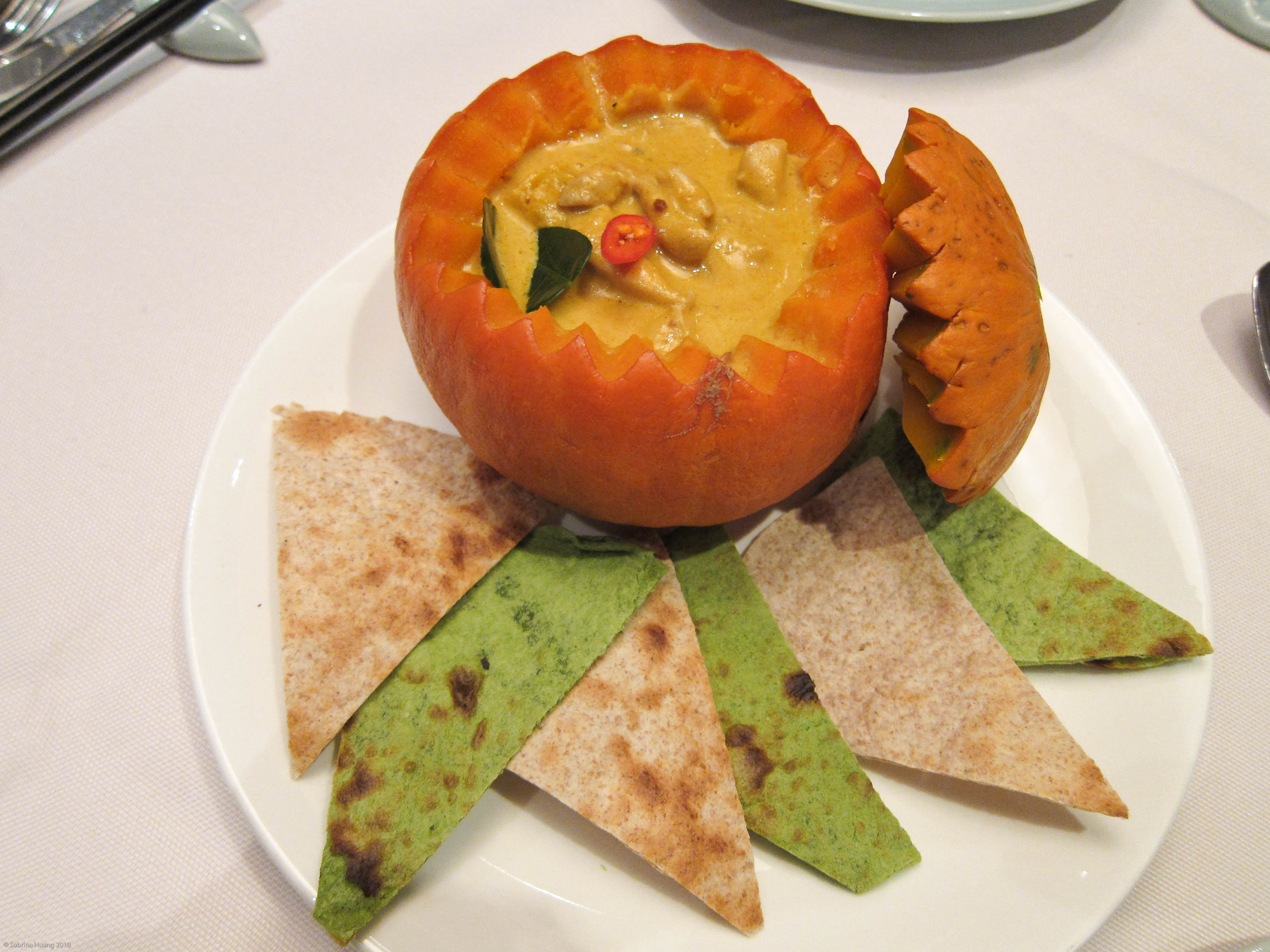 雞肉咖哩 – 份量少的離譜, 這有點像是一人份的, 起碼也要選大顆一點的南瓜裝吧.
