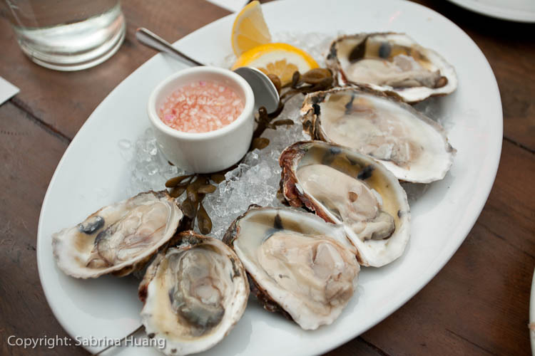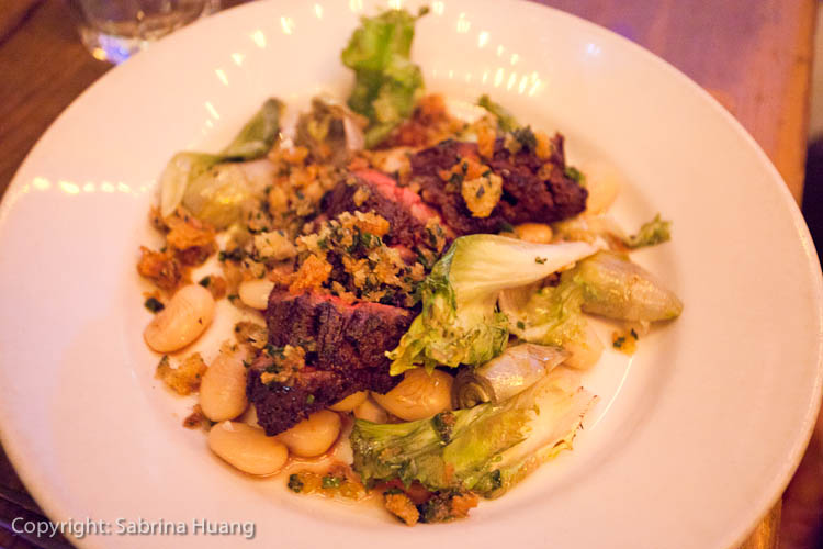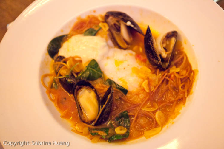 她們的菜單常換, 前菜的選擇不少, 主菜只有六種, 不過當晚我們這桌六人各有二人點一樣的, 所以最後只有四道菜可拍. 有趣的是, 美國老公們都點肉 (羊肉和牛肉), 亞州太太都點海鮮.