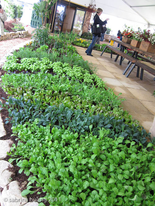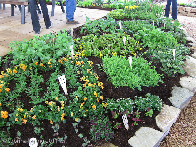 這個菜園讓我想起荷蘭的鬱金香苗圃, 整排種同一種顏色或款式的香料, 雖然都是綠色, 但深淺不一, 也挺好看得. 這個美麗的菜園是由Star Apple Edible Gardens所設計, 比一般木頭框的菜園漂亮多了.