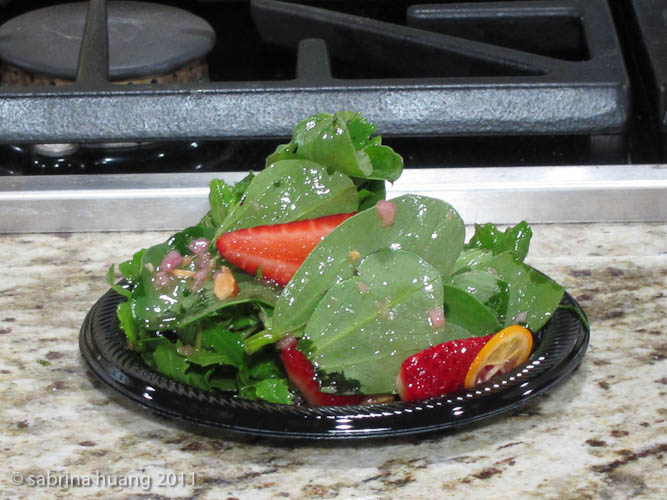 第二道是Strawberry-Kumquat Salad with fava shoots, almonds, and vanilla salt. 意外的是, 最後大家都有機會吃到這盤沙拉 (還好我們坐到最後, 哈哈哈). 我最愛簡單易做, 但美味無比的菜. 這下應該找機會去他的餐廳吃一頓啦.