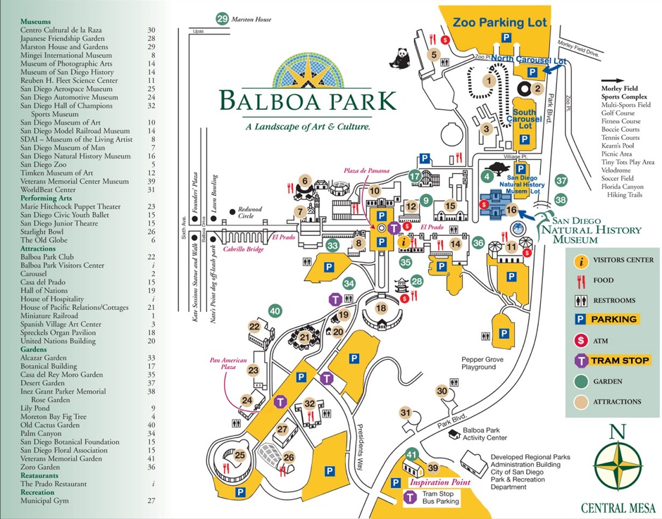 Balboa Park公共區域是二十四小時開放 (可以拍夜景), 遊客中心是每日的早上九點半到下午四點半, 建議先到遊客中心一趟, 有很多資料可問可拿. Balboa Park聚集十五個Museums (Plus Zoo), 成人門票從美金三塊到十八塊不等.