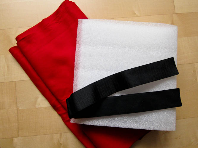 材料很簡單: 布料, 包裝用的塑膠泡綿 (可以去Container Store買有折痕的可撕成一塊一塊的那種), 魔鬼沾. 然後把相機尺寸量好, 圖畫好, 就可以開始剪布, 開始車啦, 大概花我幾個小時就做好囉.