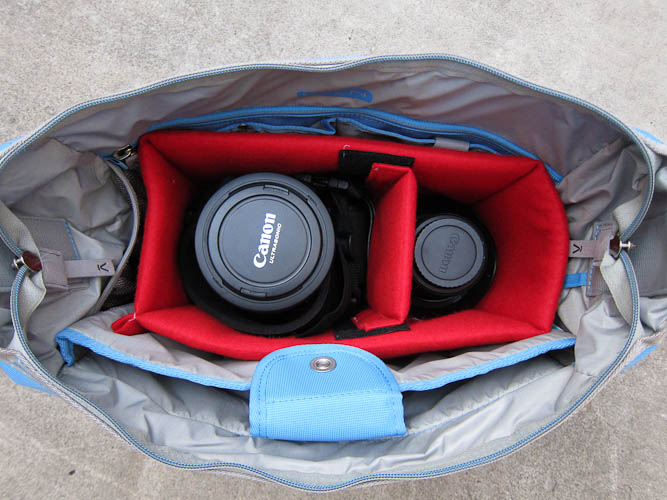 而且包包還有空間可以裝皮夾, 太陽眼鏡, 手機, Water Bottle, 筆啊, 小筆記本啊, 可重複使用的購物袋. 如果不帶大相機, 就把Insert拿起來, 就變成一般的側背包.