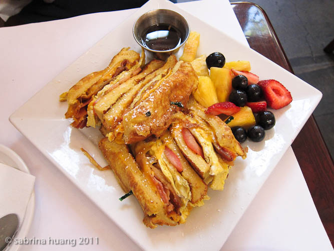 這是第二個週日點的早餐 – 我點Green Egg Benedict; 老公點的是法國土司夾蛋和培根.