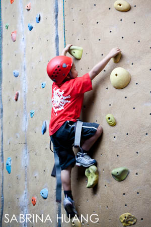 我發現有刺激有差, 每次當Dylan or Tristan爬到一半開始喊累, 說要下來的時候, 如果大哥哥Luke或者是我在下面心靈喊話 (再爬二步或者你剩下幾步就到頂), 給他們一點指引 (左腳先上, 然後右手), 他們就能撐久一點, 而且有練習有差, 幾天下來, 同一個Route如果之前爬過, 後來都可以爬得更快, 然後登頂.