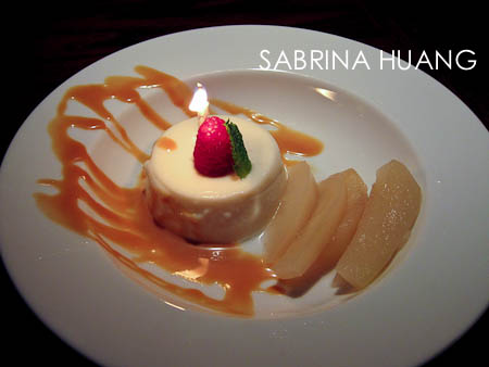 Pear Panna Cotta – 服務生很貼心, 之前聽到當天是我生日, 後來我們點這道甜點, 等她送上桌時還貼心的插上一支小蠟燭.