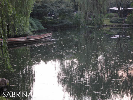 西湖周邊有許多餐館和咖啡廳, 我們選了台灣人開的"一茶一座"吃午飯, 雖然室內裝潢和餐具的水準都不錯, 但是一聽到多要一個茶杯要十塊就印象不好了, 外加每桌只給一份菜單 (後來問了服務員才知道當地人喜歡一堆人看一份菜單討論), 餐巾紙要開口要才給 (有的大陸餐館不給餐巾, 一包賣一塊). 雖然一茶一座在台灣不是高級餐館, 但在大陸西湖的這家在室內裝璜, 餐具 ,服務上皆塑造中高檔的感覺, 對於大陸人可能算高檔, 但比起台灣, 還差得遠, 因為好的服務是出自內心, 不是光看表面的裝飾而已.