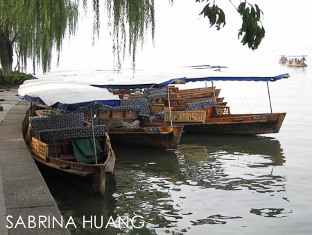 西湖周邊有各式各樣, 大大小小的船可租來遊湖 (上圖是手搖船)