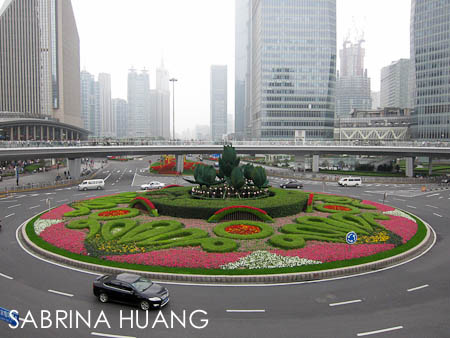 東方明珠前方的這個圓環讓我想起法國凱旋門, 以及周邊放射狀道路, 比較有意思的是那個圓弧狀天橋, 很美.