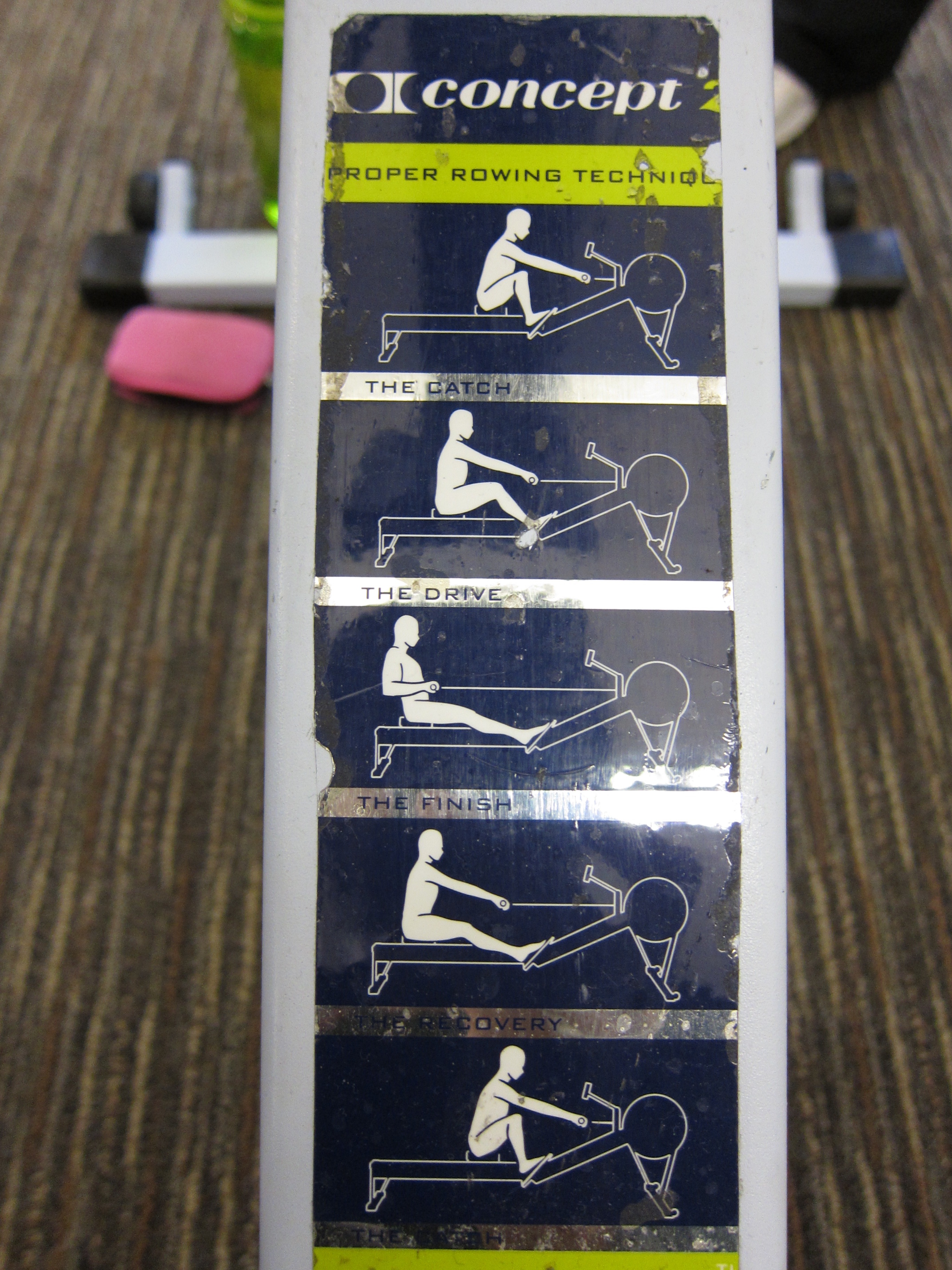 This Proper rowing technique可以拿來做五分鐘當暖身. 左圖的面向機器的右邊有個銀色圓型帶狀, 可以調整抗壓難度.