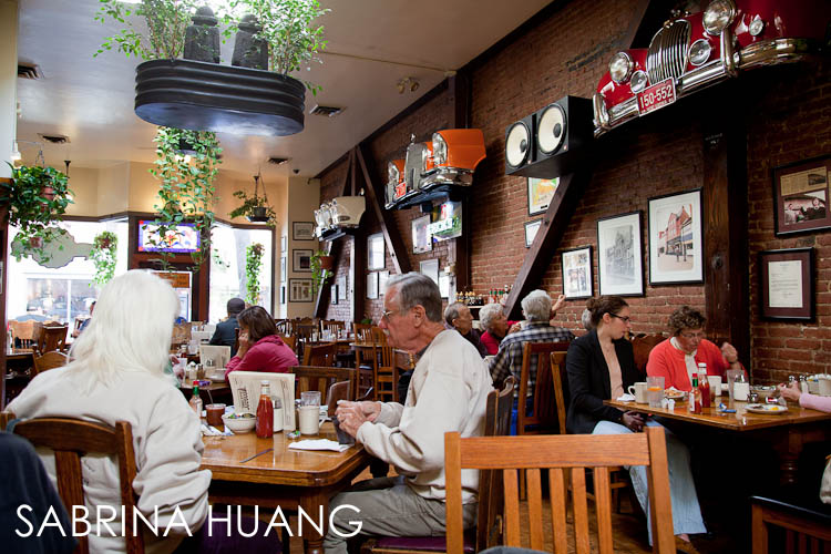 隔天早上走路到4th St – 先到Omelette Express吃早餐, 老闆是Jaguar車迷, 所以餐廳裡面都是車頭身當裝飾.