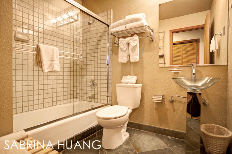 相較之下, 這浴室就嫌小, 而且水槽沒有地方放東西, 不過毛巾又大條又蓬鬆 而且附的盥洗瓶很可愛.