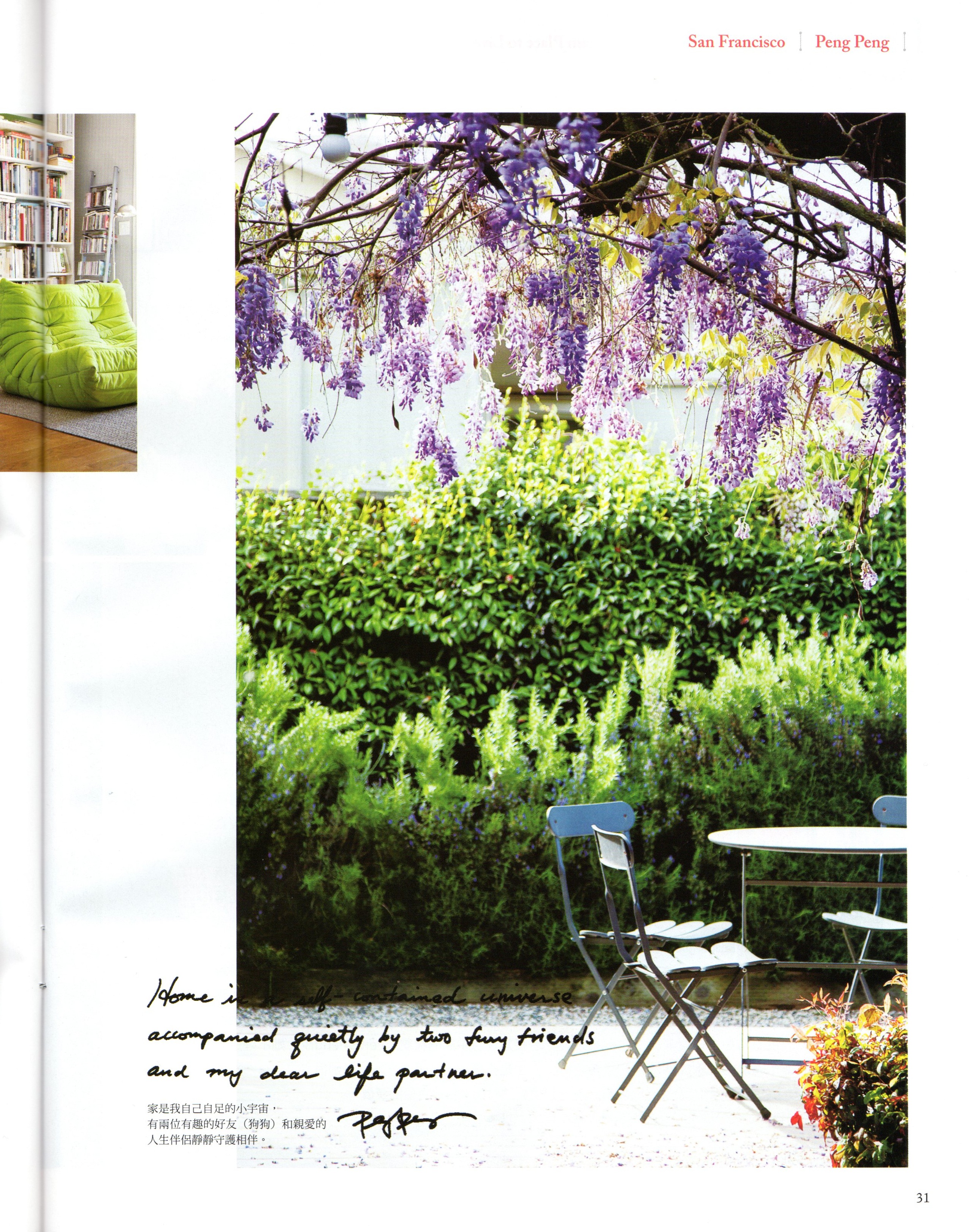 住在台灣的朋友, 別忘了去買六月號來看喔, 因為六月號的主題是創意人的家 – 裡面有來自英國的室內設計師, 法國的設計精品店店主, 阿拉伯聯合大公國的王室私人顧問, 英國建築師和雕塑家, 和美國的藝術修復師等創意人的家.