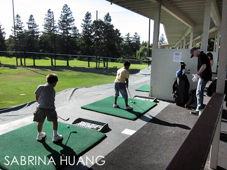 傍晚老公帶他們去高爾夫球練習場, 孩子的爸爸也愛打球, 所以孩子們自己有一套球具, 不過老公只讓他們帶一支杆, 因為他說, 小孩容易分心, 真要練習, 一支杆就夠了.