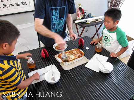今天的晚飯吃的早, 因為老公等一下還得帶客人看房子, 老公趕在他們睡覺前回來, 剛好還可以跟他們下盤棋. 等孩子上床睡覺後, 老公跟我說, 他今晚去Show Houses的時候, 心裡其實希望可以待在家裡和孩子Play Games. 我看他還蠻Enjoy每晚和孩子玩遊戲的那段時間.