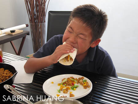 有頓晚餐老公說Make Your Own Taco, 結果看著孩子一邊吃一邊掉, 還不停的說好好吃喔, 也許這就是簡單的幸福和單純的美味吧.