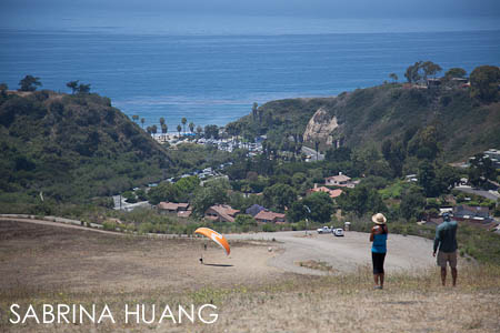 我十幾二十年前在台灣的翡翠灣也飛過, 不過當時是和教練一起 (一個坐前面, 一個坐後面). 可能是地勢問題吧, 因為Santa Barbara's Elings Park地形和風勢很讚, 從半山腰飛下去, 降落在平地後有車子可以載你上來.