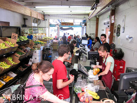 這個小市場真的不大, 加上各式各樣的商品很多, 走道變得很窄小, 建議不要推車, 拿手提籃吧, 免得走一半就卡住.