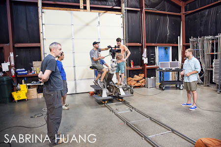 第二天拍外景, 所以一早就要搬運很多很重的相關器材, 幾個人一起搭起Dolly要用的軌道, 這下我真的要轉班了.