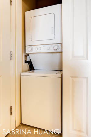 從走道看, 每個入口都有二個門號/二個門鈴, 開了門進去, 發現有一個玄關. 後來發現玄關的好處是隔音/吸音, 因為洗衣烘衣機剛好就在房間入口的門後, 當隔壁在洗衣服的時候, 我們其實完全沒聽到聲音. 幾天下來我們都沒有聽到樓上或隔壁的聲音, 除非隔壁間的小孩在玄關吵鬧才會聽到.