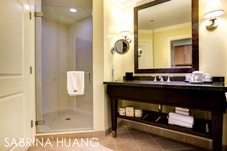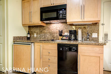 Villas的規劃和Hotel在某些地方不太一樣 – Villa的房間較大, 因為房內有洗衣/烘乾機, 電視, DVD Player, Radio, 小廚房 (二個電磁爐式的平面Stove, 洗碗機, 冰箱, 微波爐, 烤麵包機, 咖啡機, 茶包/咖啡包/奶精, 小水槽, 鍋碗瓢盆, 菜刀/覘板/餐具, 洗碗精), 吸塵器, 熨斗, 浴室也大 (淋浴間和澡盆都很大), 不過, 沒住滿一週, 就沒有人打掃 (要求打掃, 換毛巾, 需另外付費).