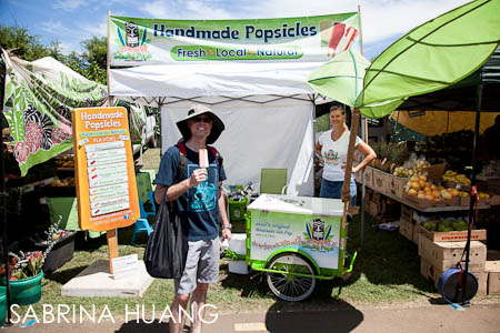這一個手工冰棒攤Shaka Pops Maui, 是以夏威夷當地食材來做冰棒, 例如Maui pineapples, Kula strawberries, Kona coffee, and Hawaiian vanilla, natural cane sugar, 最受歡迎的便是馬克手上拿的這個Lava Flow (跟地緣有關), 味道很特別.