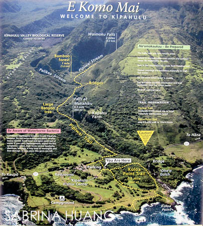 HANA (我們以Westin Villa給我們的List為基礎, 再加上我們自己的註解和照片; 你也可以在幾個有賣Road to Hana CD的商家買導覽CD, 一邊開車一邊聽導覽)