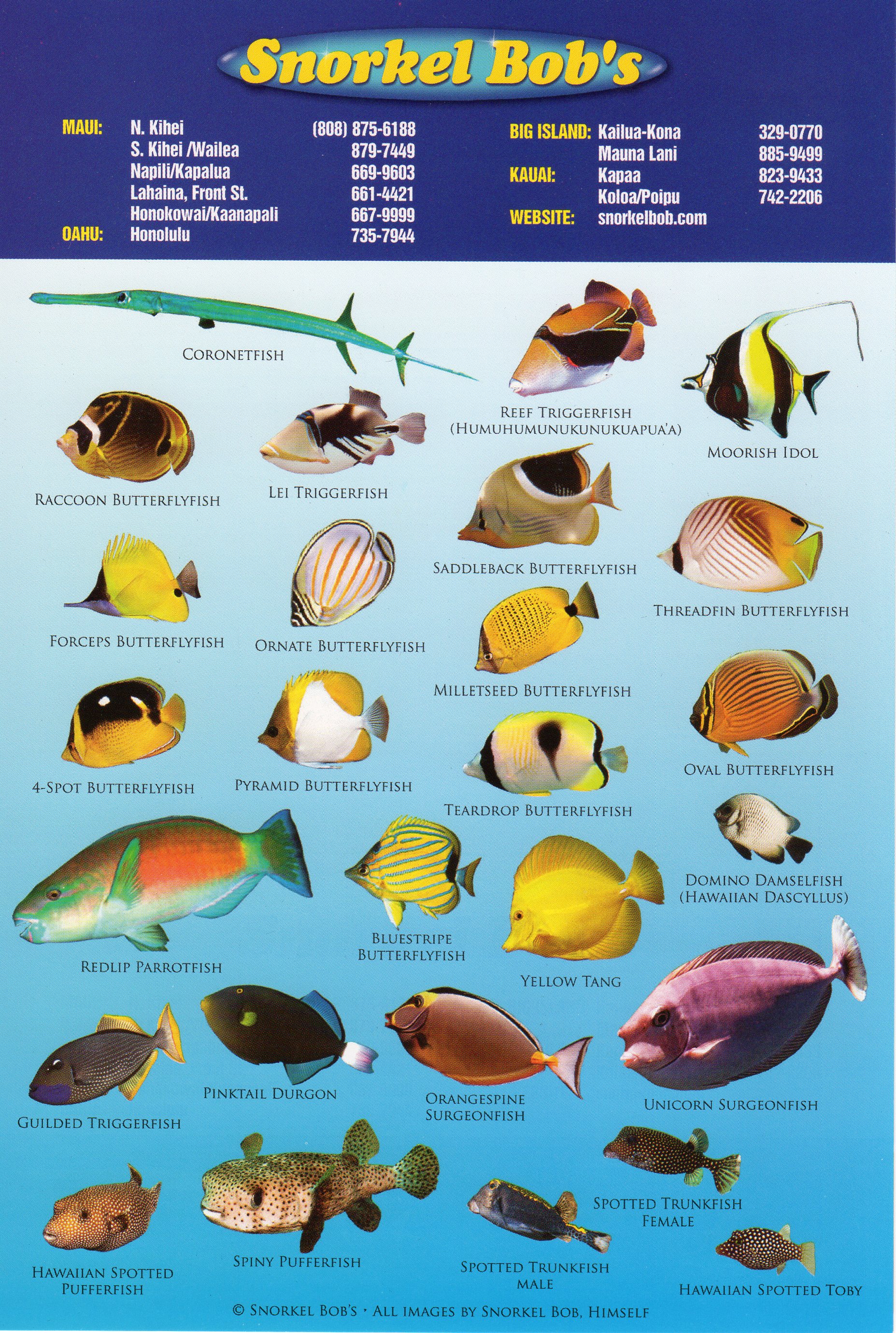 到Kiehi後, Maui Coast Hotel推薦我們去Snorkel Bob's (整個夏威夷都有分店, 所以你可以A點租, B點還, 很方便) 租浮淺器具 Mask+Fins, 日租費用是Custom Fit $11, Standard $8, 另外怕沈的人還可以再租一條Floating Belt $5. 而且還給了一張注意事項和一張彩色的魚群對照圖.