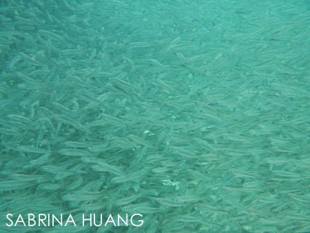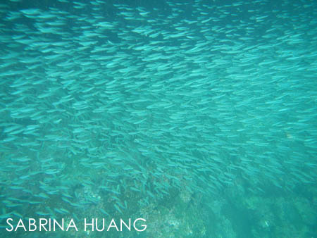 上船後再經過Loh Samah灣, 電影也曾在此取景. 然後到Phi Lay灣 (人稱天然泳池), 跳下船游泳一小段時間 (水很鹹). 然後去看有名的燕窩洞, 然後來到Monkey Beach浮淺四十分鐘. 有好多小魚排成一長排的圍牆, 很壯觀喔.