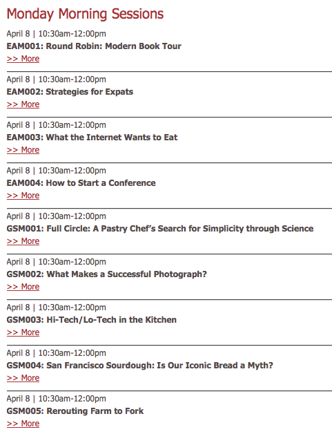週一上午我參加What makes a successful (food) photograph?講座, 結果非常失望, 也許是因為主講人的藝術背景, 她連續放了好多古早時期以食物為主題的Paintings and photographs, 而且很多還是同一個藝術家的作品, 讓我以為我是坐在大學藝術系的課堂上, 真是浪費時間.