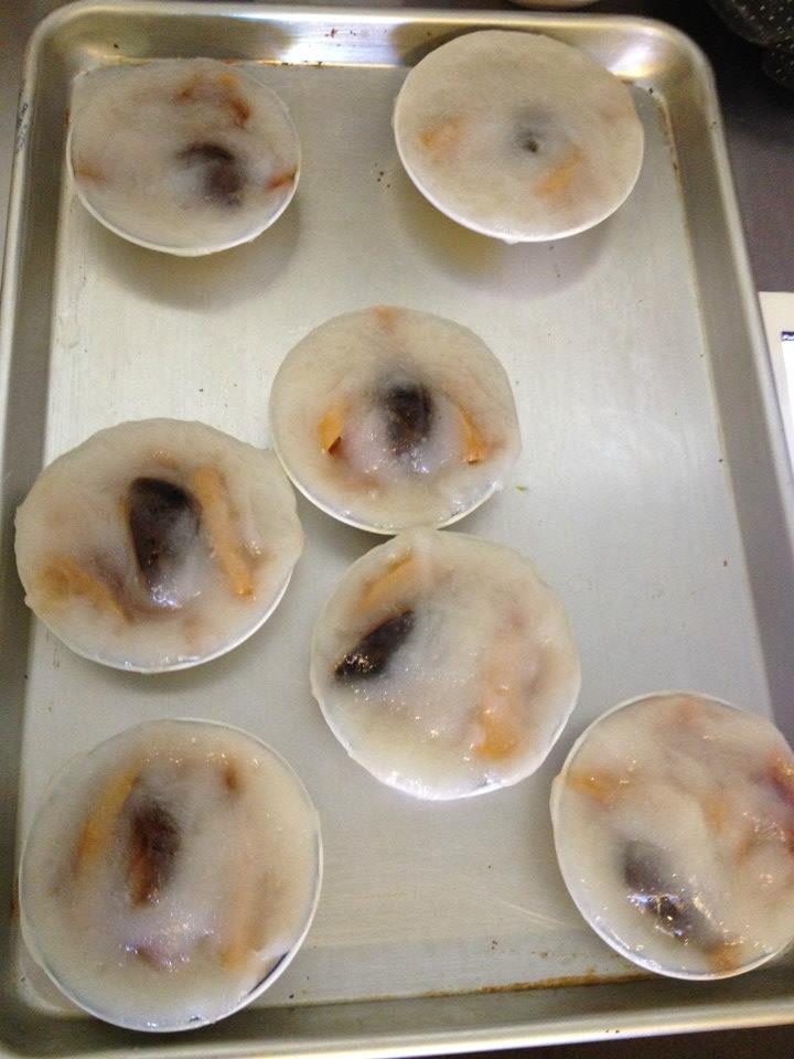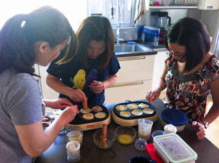 後來找了一天和幾個同學在我家複習鳳梨酥和車輪餅, 不過我們是先從大家各自在家做好帶來的蘿蔔糕, 鮭魚炒飯, 肉燥開始吃, 算是暖身.