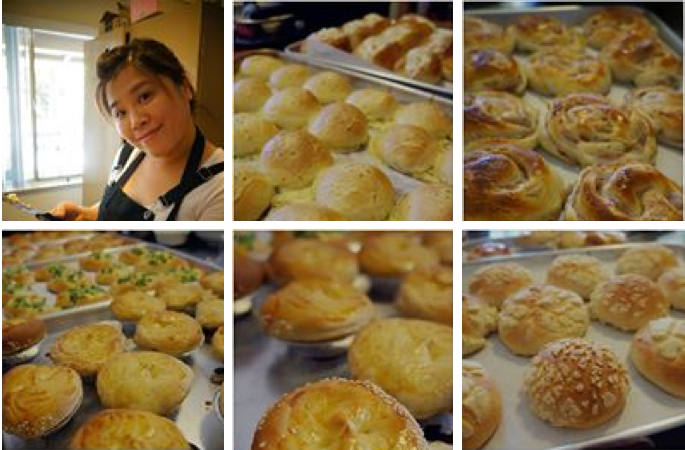 六月份學手工湯種麵包(午餐排骨飯), 原本的課程內容是做蔥花包,熱狗芝士包,鮪魚包,肉鬆包,芋頭包,藍莓辮子包,菠蘿包,奶酥包等八種 (如果吃素的則前4款改奶黃包,炸可樂餅包,奶油小餐包,蛋沙拉包).