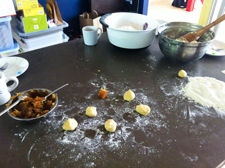 吃飽了才開始做四種口味的車輪餅(奶油, 紅豆, 芋頭, 蘿蔔絲),